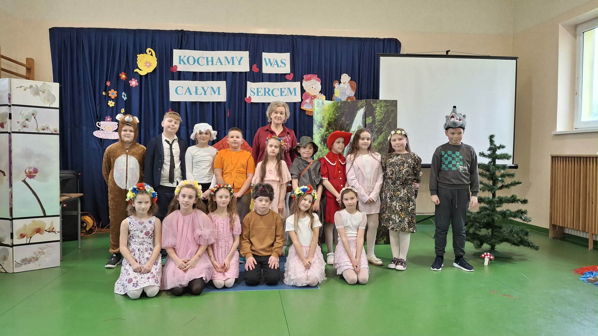 Dodatkowo uczniowie klasy I przedstawili „Rzepkę” , uczniowie klasy III „Czerwonego Kapturka”. Drugoklasiści nauczyli się pięknych piosenek z lat młodości dziadków i zaśpiewali je w Koncercie Życzeń