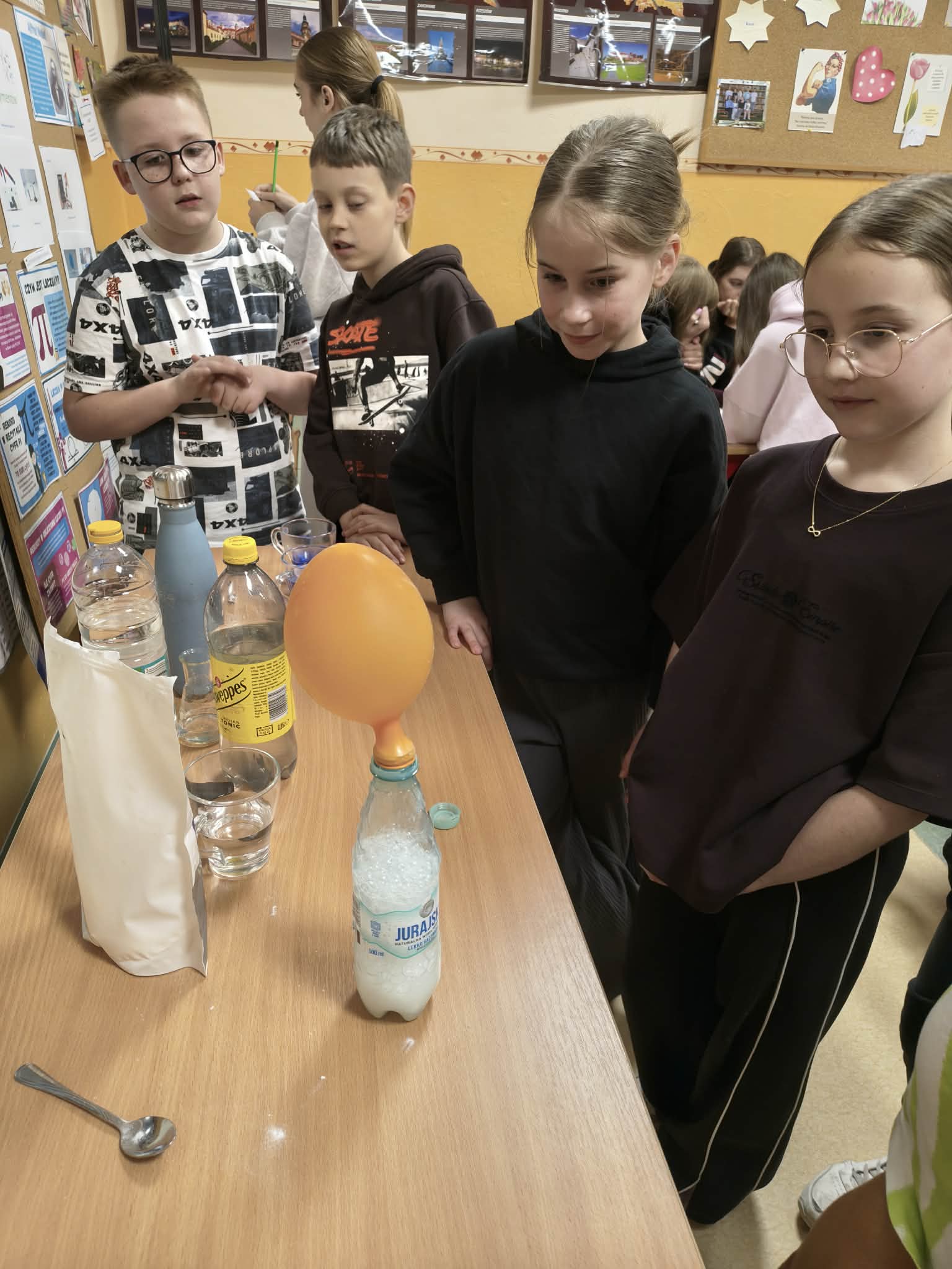 Dziś w naszej szkole zorganizowaliśmy dzień matematyki i eksperymentów chemiczno- fizycznych🧪🌡️ . Dzieci uczestniczyły w pokazach fizyczno- chemicznych przygotowanych przez panią Katarzynę Mendakiewicz. W parach rozwiązywali zagadki logiczne 🤔🤔🤔, rebusy, brali udział w stacjach zadaniowych, układali matematyczne puzzle 🧩🧩przygotowane przez panią Annę Kamosińską.