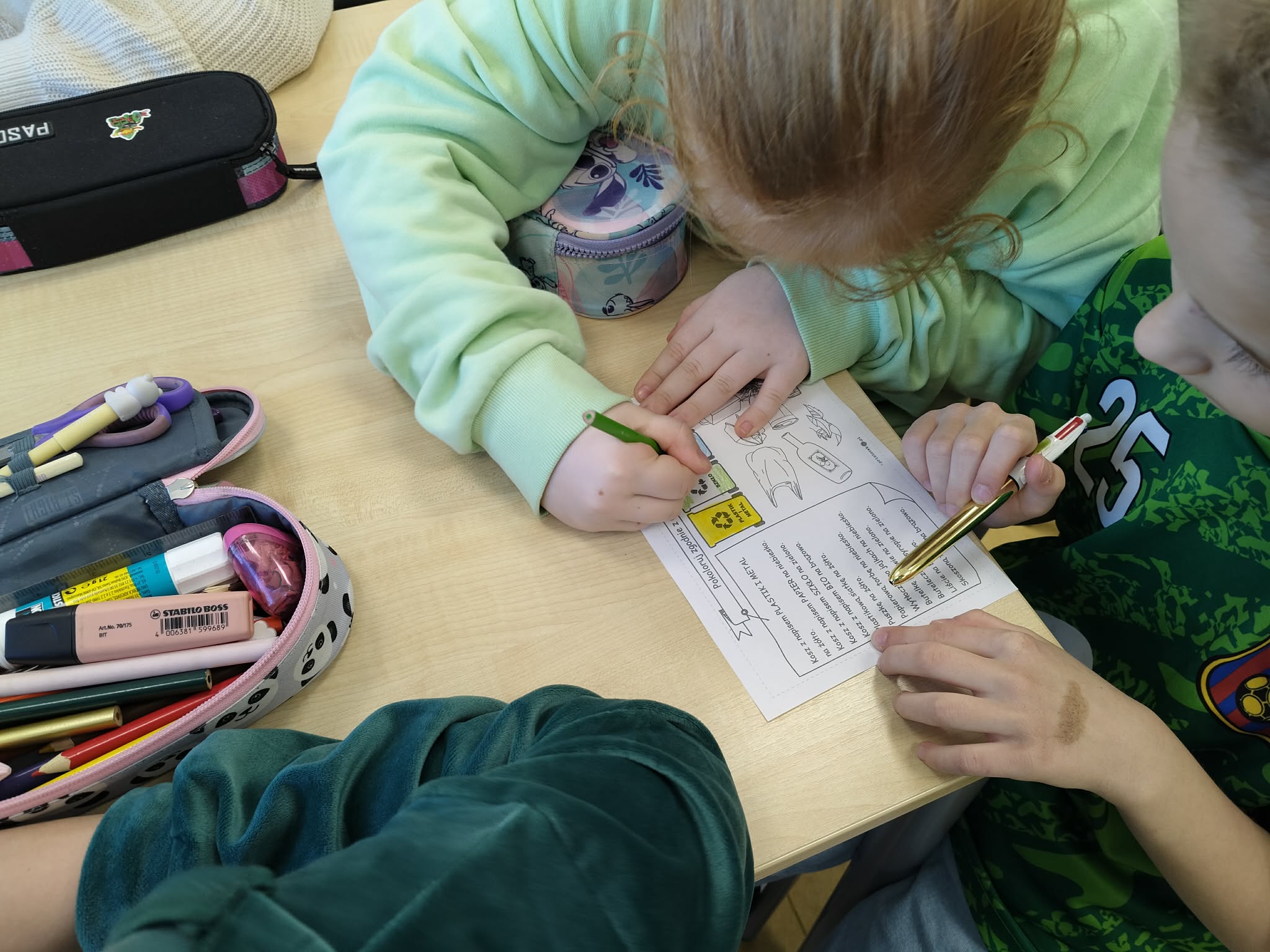 Następnie wyruszyli, aby posprzątać najbliższą okolicę, zbierając śmieci i ucząc się odpowiedzialności za przyrodę. Uczniowie klas młodszych wzięli udział w quizach o ekologii, rozwiązywali łamigłówki. Dzieci z przedszkola również miały wiele tematycznych aktywności.